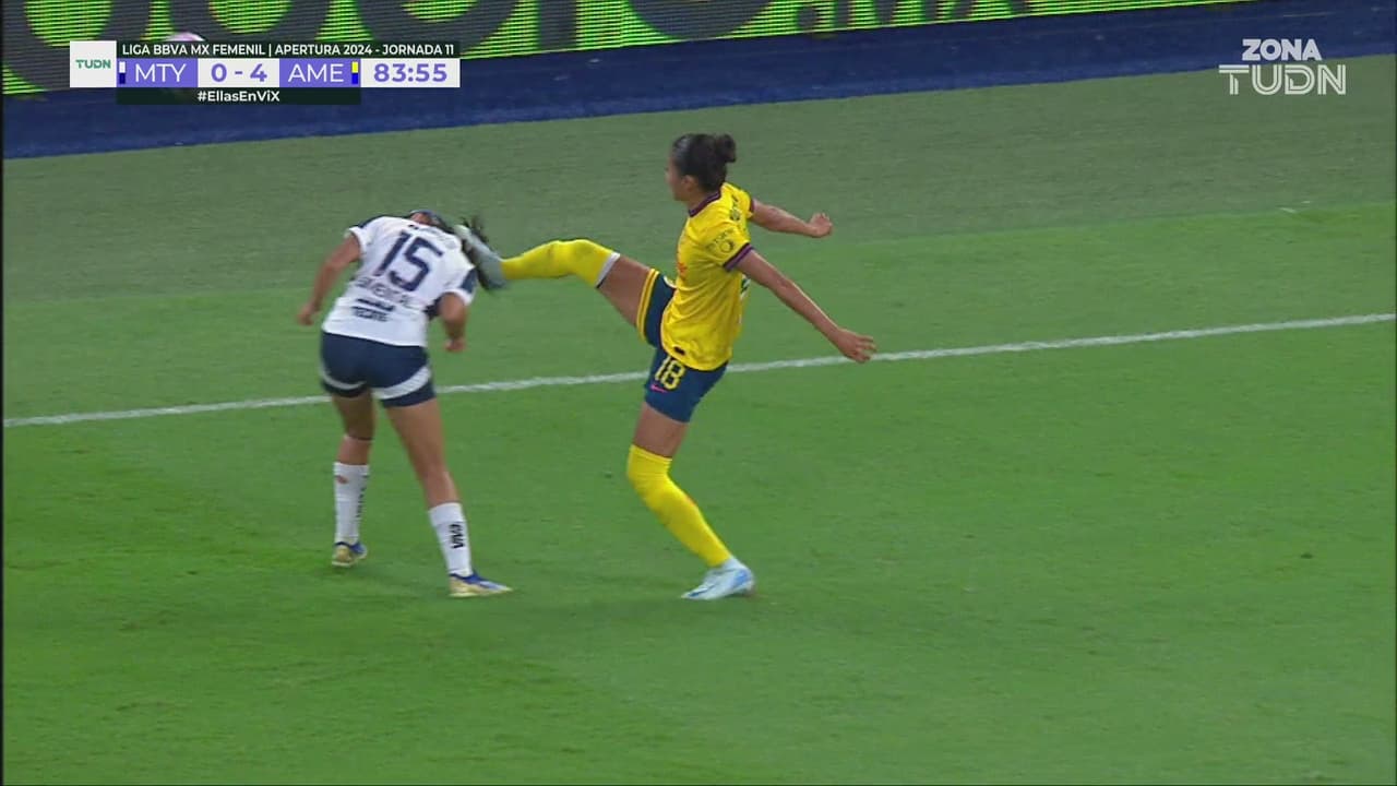 La jugadora del América fue por la pelota, pero se encontró la cabeza de la jugadora de Rayadas.