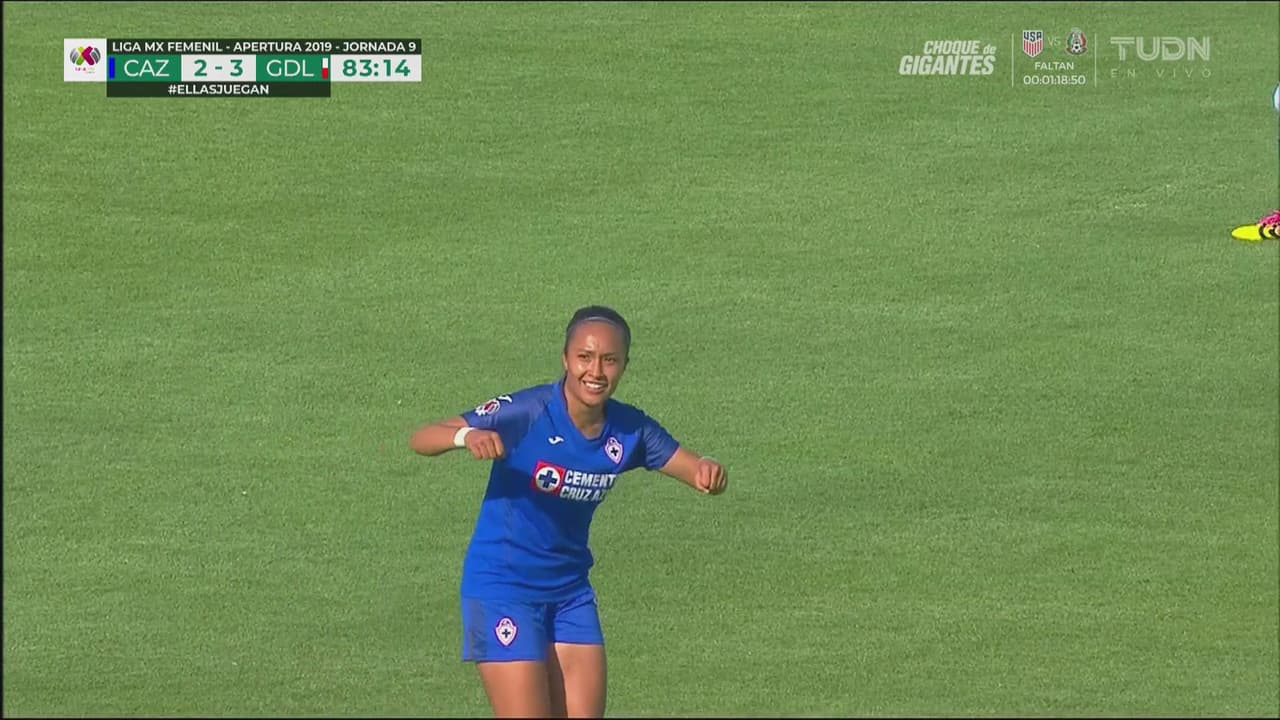 Un remate colocado desde el borde del área se le cuela a la portera de Chivas y llega el 2-3.