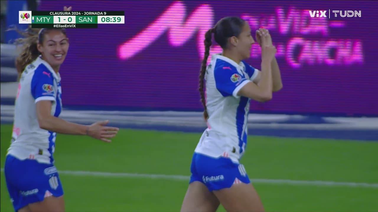 Monterrey hizo una gran combinación dentro del área para que Mayra metiera un derechazo imparable para la portera de Santos.