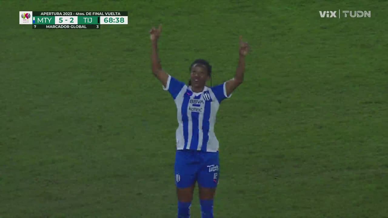 Con complicidad de la arquera rival, la sudafricana afina su mirilla para anidarla al fondo de la red tijuanense.