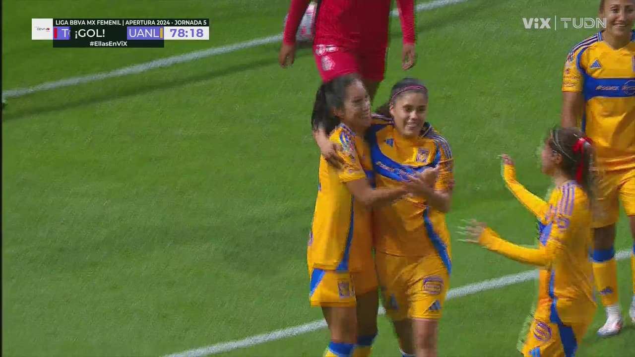 ¡Golazo de Tigres! Cabezazo de Maricarmen para techar a la portera para el 5-0
