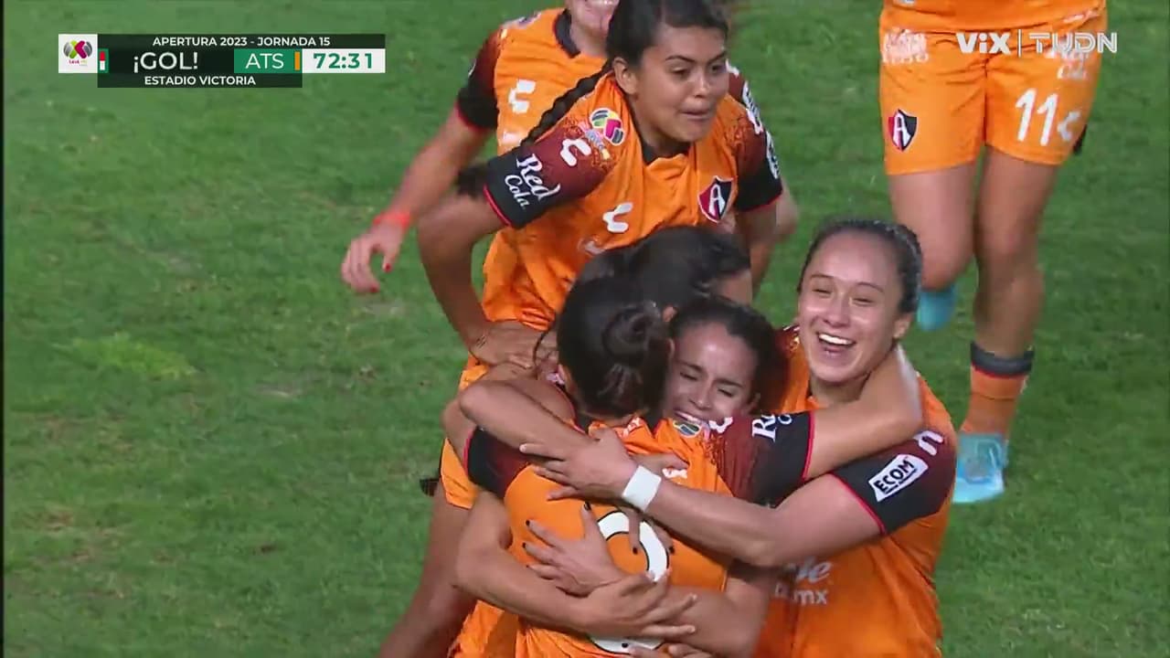 En jugada de tiro indirecto, la futbolista visitante se levanta sobre la defensa para enviarla a las redes del Necaxa para el 0-1.