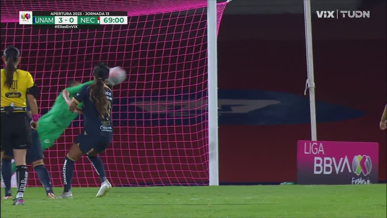 La primera llegada con peligro de Necaxa fue atajada por la guardameta de Pumas.