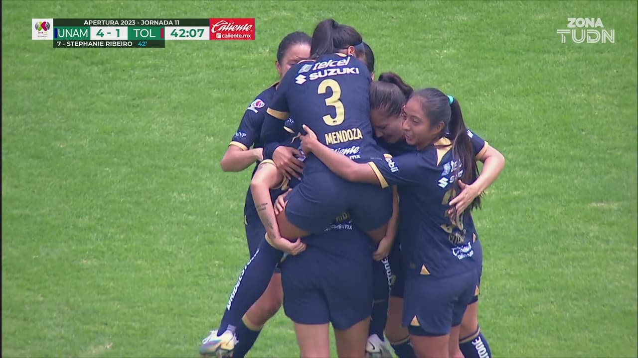 Gran golazo y doblete de Stephanie Ribeiro que pone el 4-1 de Pumas