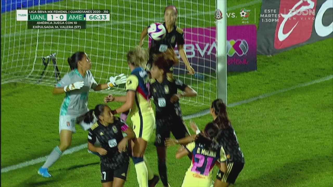 Jocelyn Orejel con un cabezazo casi anota, pero la defensa logra despejar al 66'.