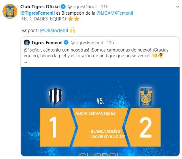 Hasta la FIFA se pronunció: los mensajes de felicitaciones para Tigres Femenil por el título de Liga MX