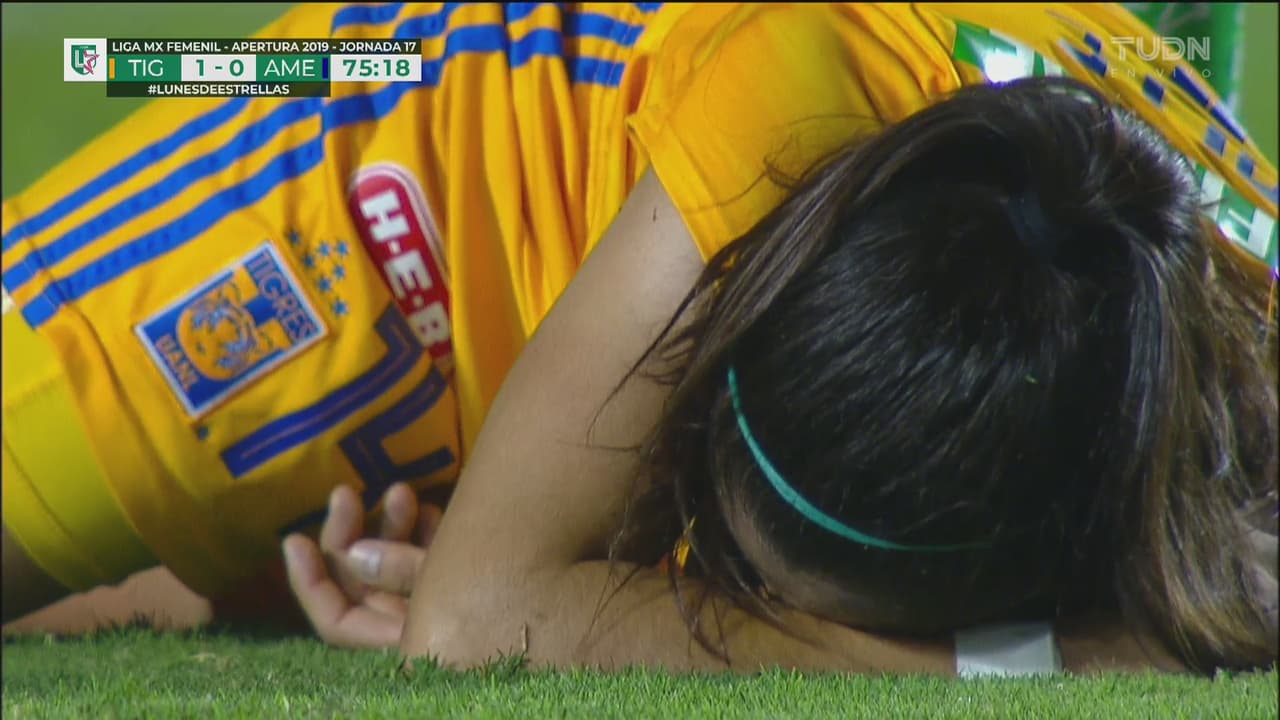 La delantera de Tigres se cayó sobre su propia clavícula y muñeca dentro del área del América.