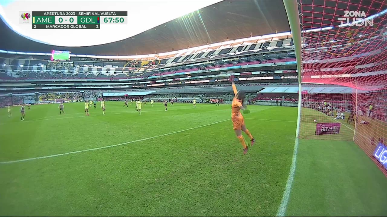 La portera azulcrema evitó un golazo de Chivas y mantiene el cero en el marcador.