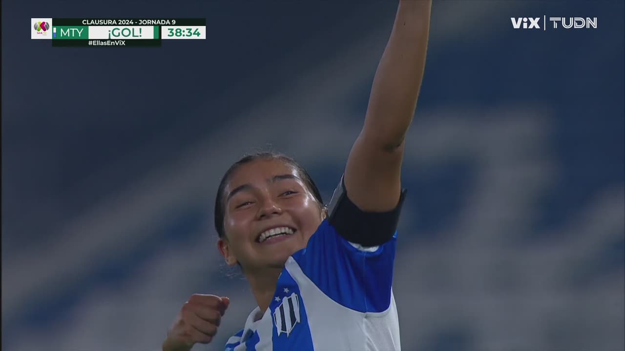 La volante de Monterrey robó un balón a las afueras del área de Santos y le pegó de primera para colgarla del ángulo.