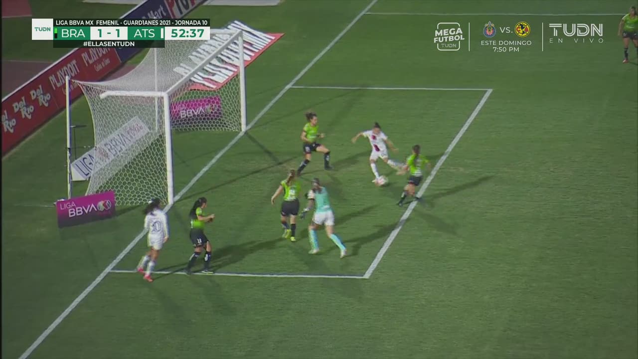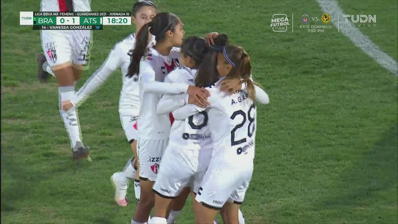 Vanessa González jaló el gatillo e hizo el 0-1 de Atlas al minuto 18; la atacante se animó y disparó completamente sola para poner la esférica en el ángulo.
