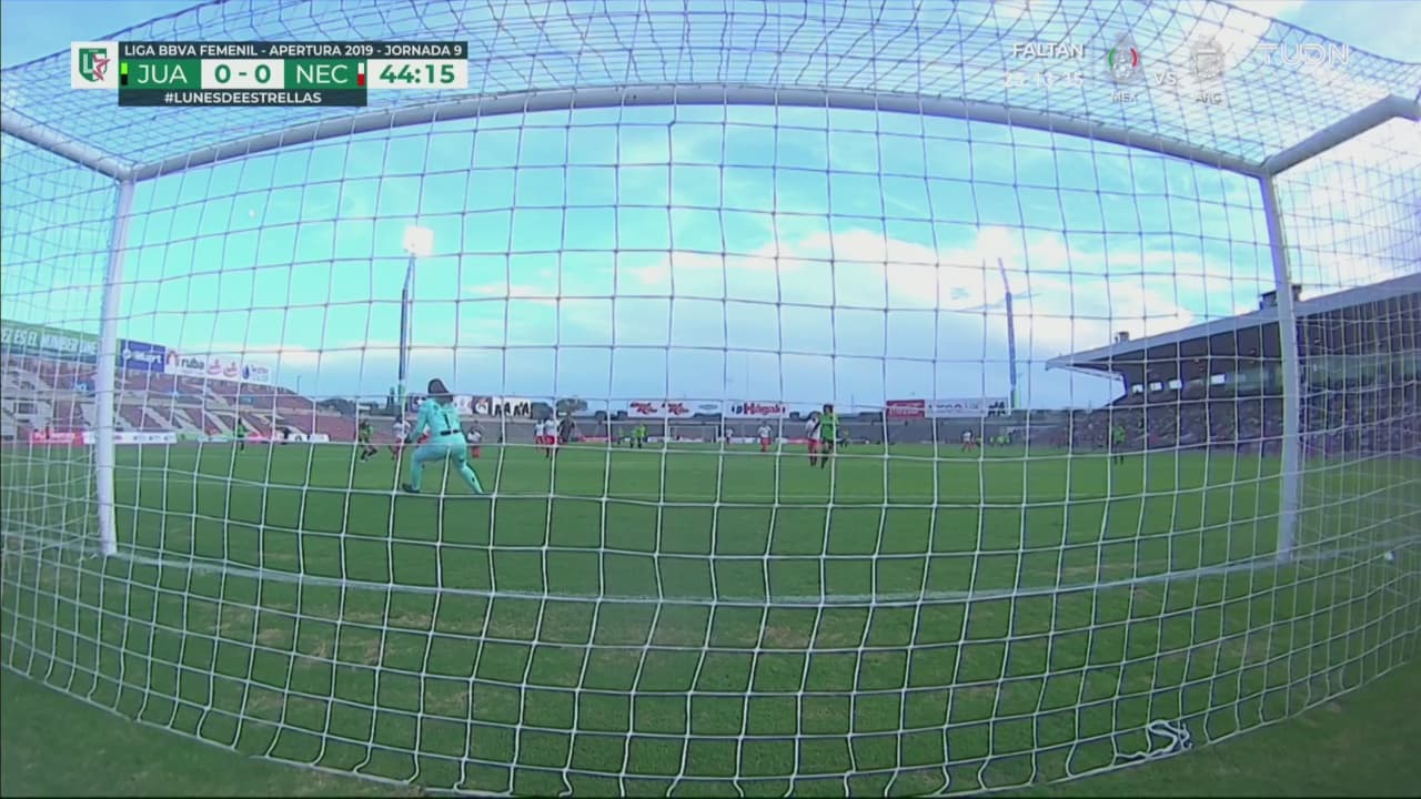 Silvia Elicerio decidió disparar con metros por delante y el balón se fue apenas arriba del arco necaxista.