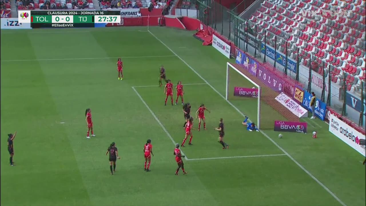 La portera de Toluca salvó a su equipo del inminente gol de Herrera en un descuido de la zaga escarlata.