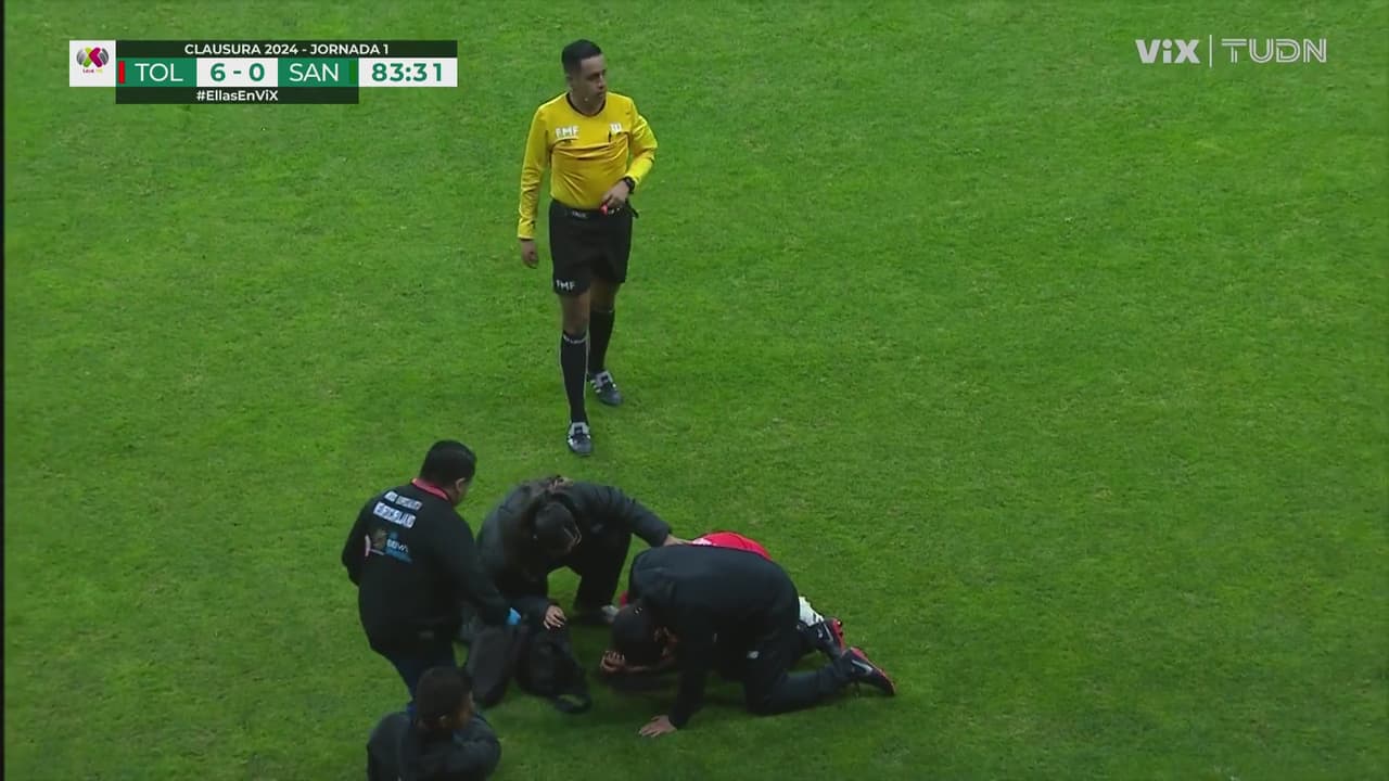 Al momento de ir a buscar la pelota, la cabeza de la brasileña de Toluca se impactó con Sheila Pulido.