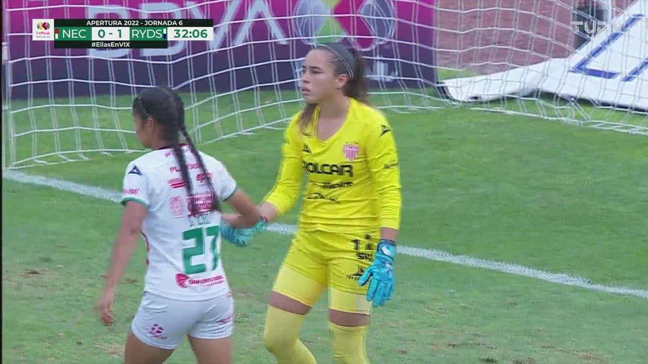 Diana Evangelista remata de larga distancia y Valeria vuelve a recostarte para mandar el balón a córner.