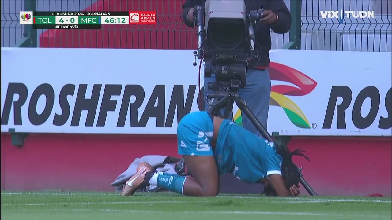 La delantera mazatleca se escapa sola y frente a la guardameta del Toluca, falla en la definición.