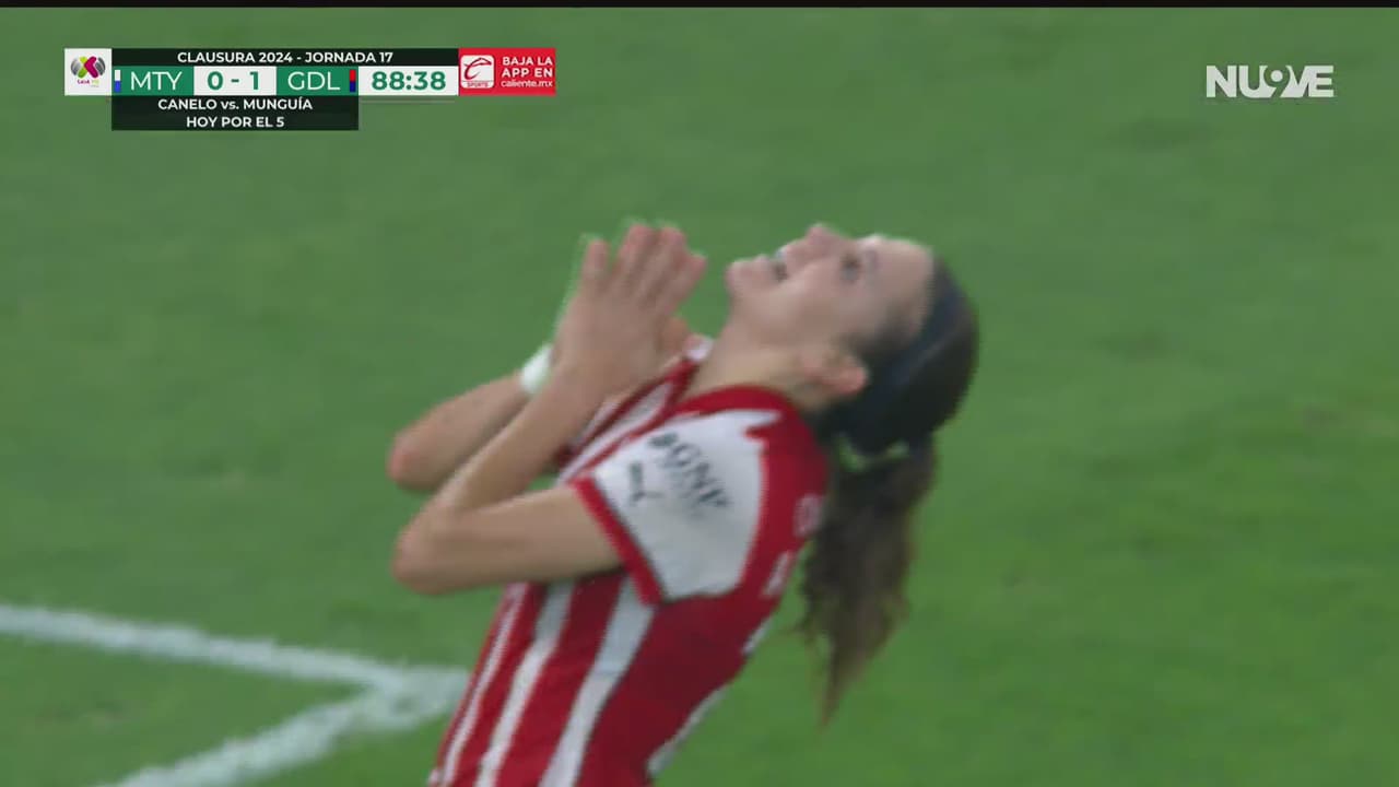 En la única jugada clara que tiene en el partido, la futbolista de Chivas deja escapar la oportunidad de estar en el marcador.