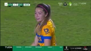 La goleadora de Tigres no le pegó al balón al 37' y sacó un remate a un lado de la portería al 38'.