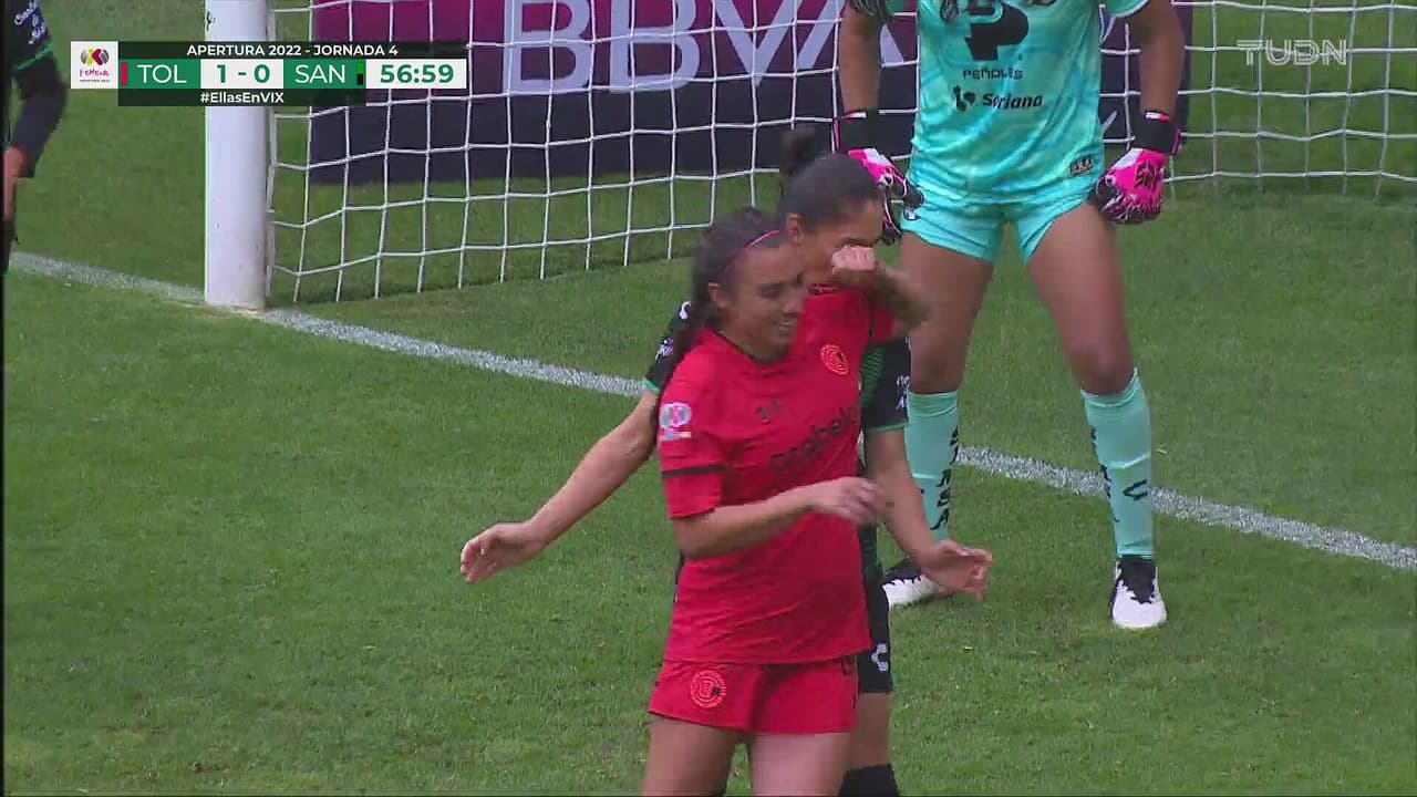 Momentos antes del corner, Destinney le da un codazo en el rostro a Lourdes, pero Miguel Morales apenas la amonesta.