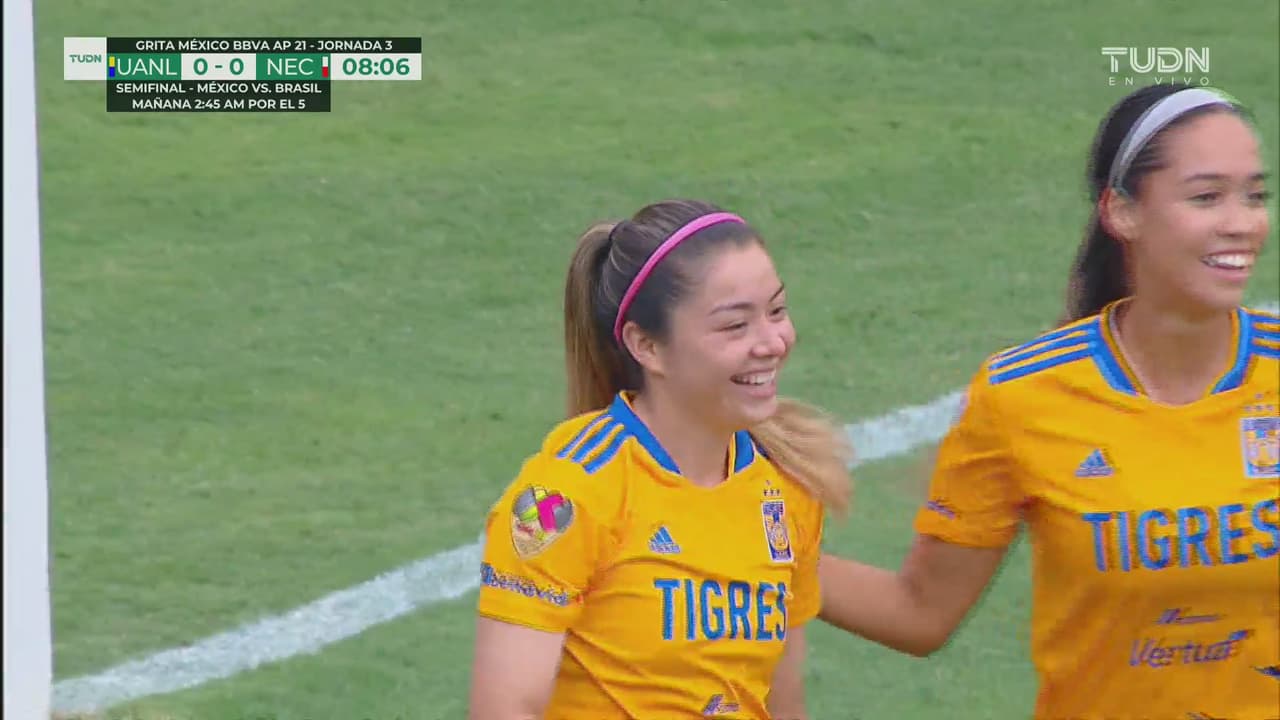 Tigres goleó al conjunto de Necaxa con un resultado de 8-1. Desde el minuto 8' Katty Martínez quien aprovecha el error de la defensa y anota desde dentro del área chica.