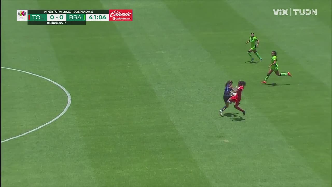 Un minuto más tarde, las Bravas de Oscar Fernández se quedaron una menos por la expulsión de Annie Mejía que se ganó la doble tarjeta amarilla por una entrada por detrás a Calvillo.