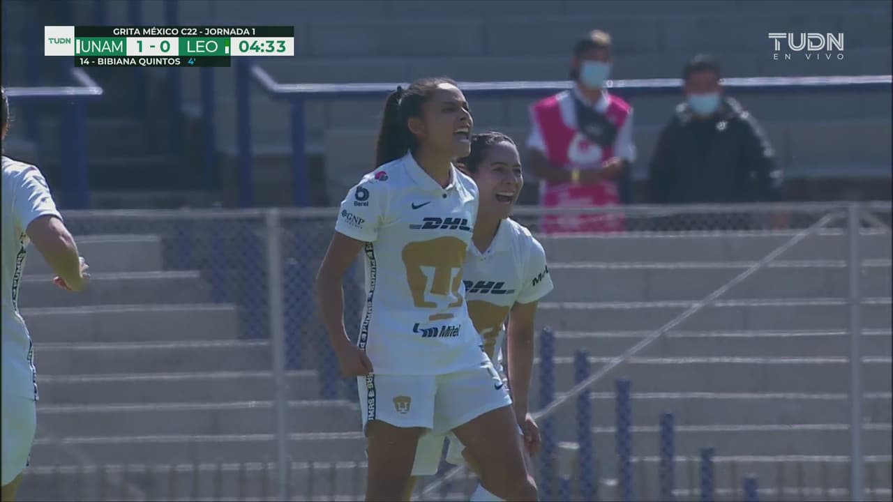 Pumas femenil se estrena en la jornada 1 del torneo Grita México C22 con la victoria en casa 10 ante León FC con anotación solitaria de Bibiana Quintos.