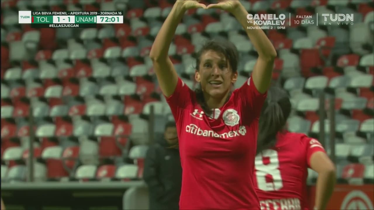 La delantera de Toluca llegó sola al área y metió un zurdazo imparable para la guardameta felina.
