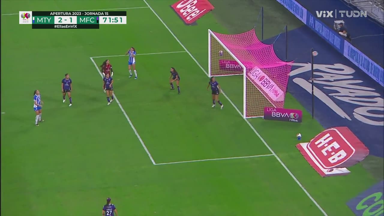 Monterrey había desbordado bien por la banda y luego de dos intentos, la delantera quedó de frente y con la portera fuera, pero erró.