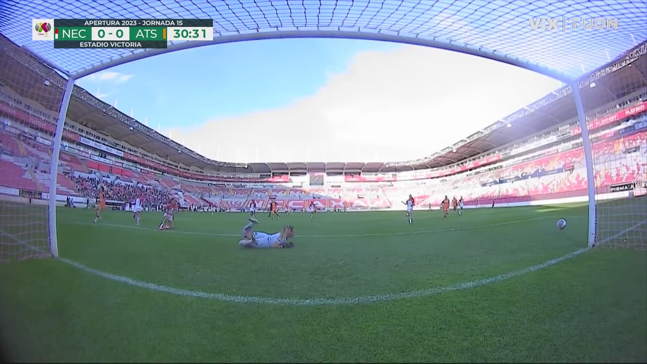 El Atlas toca mejor el balón y la jugadora rojinegra dispara sobre el arco del Necaxa, sin mayor peligro.
