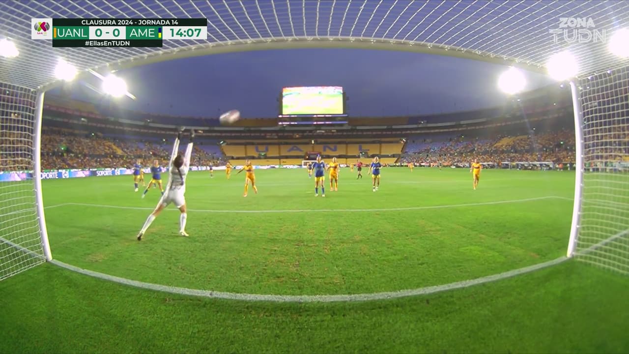 Tigres aprovechó un error de la defensa de América y recuperó la redonda para reventar el arco, pero Itzel respondió bien.