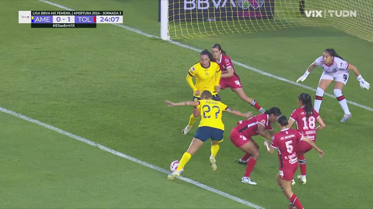 Sarah hizo una gran jugada quitándose la barrida para burlar a su contrincante y cede a Zuazua, que pisa la esférica por la marca ejercida.