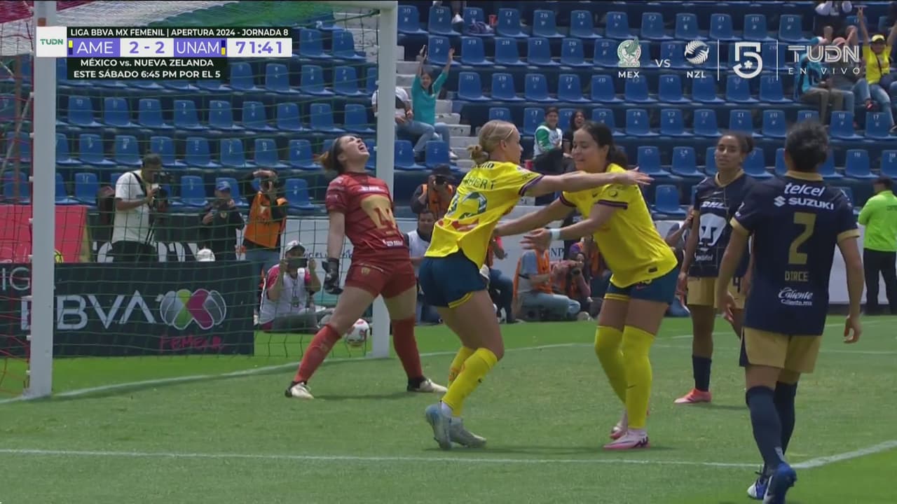 Sarah Luebbert entró desde el banquillo para poner el 2-2 de América Femenil ante Pumas Femenil tras la parcial remontada auriazul.