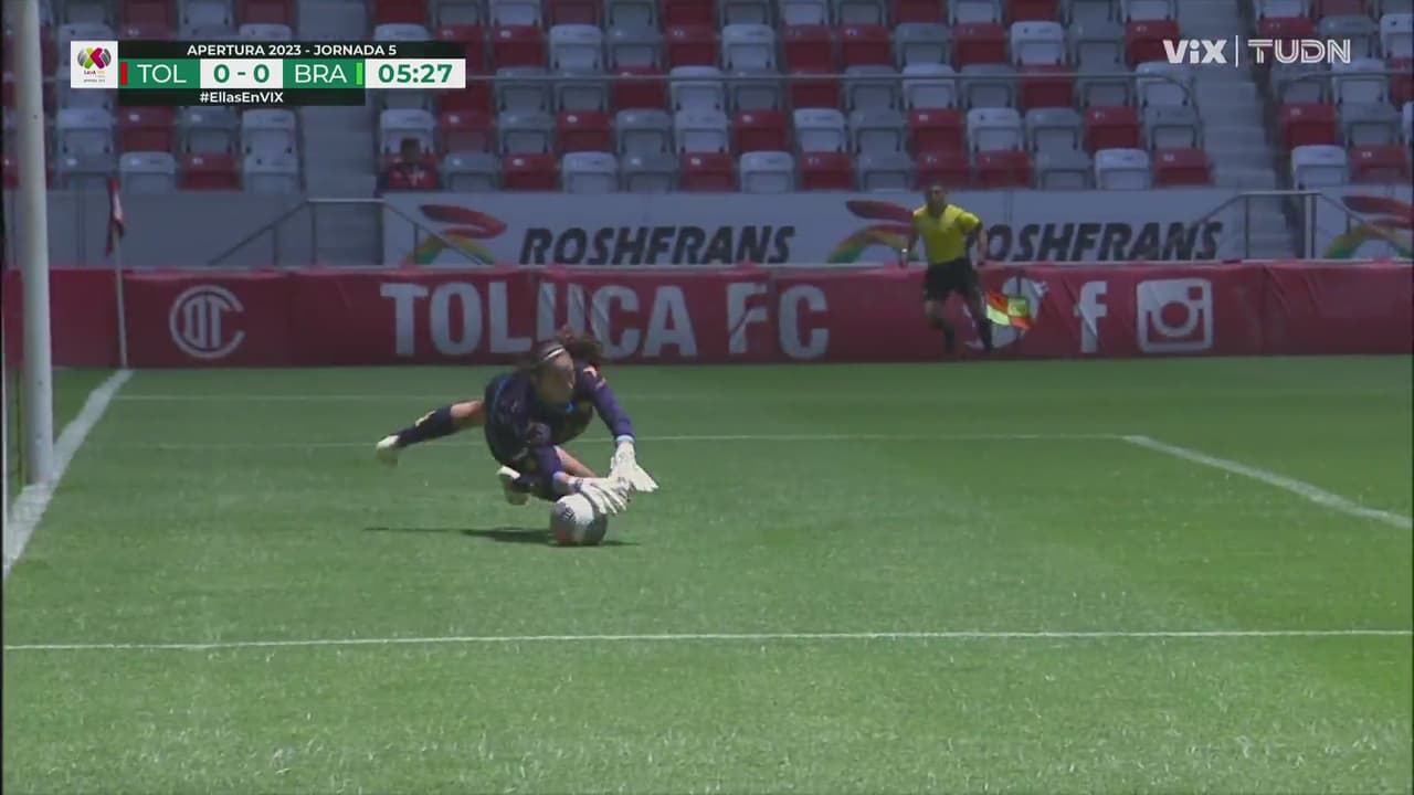 Natalia Acuña se recuesta ya ataja el remate de Macías