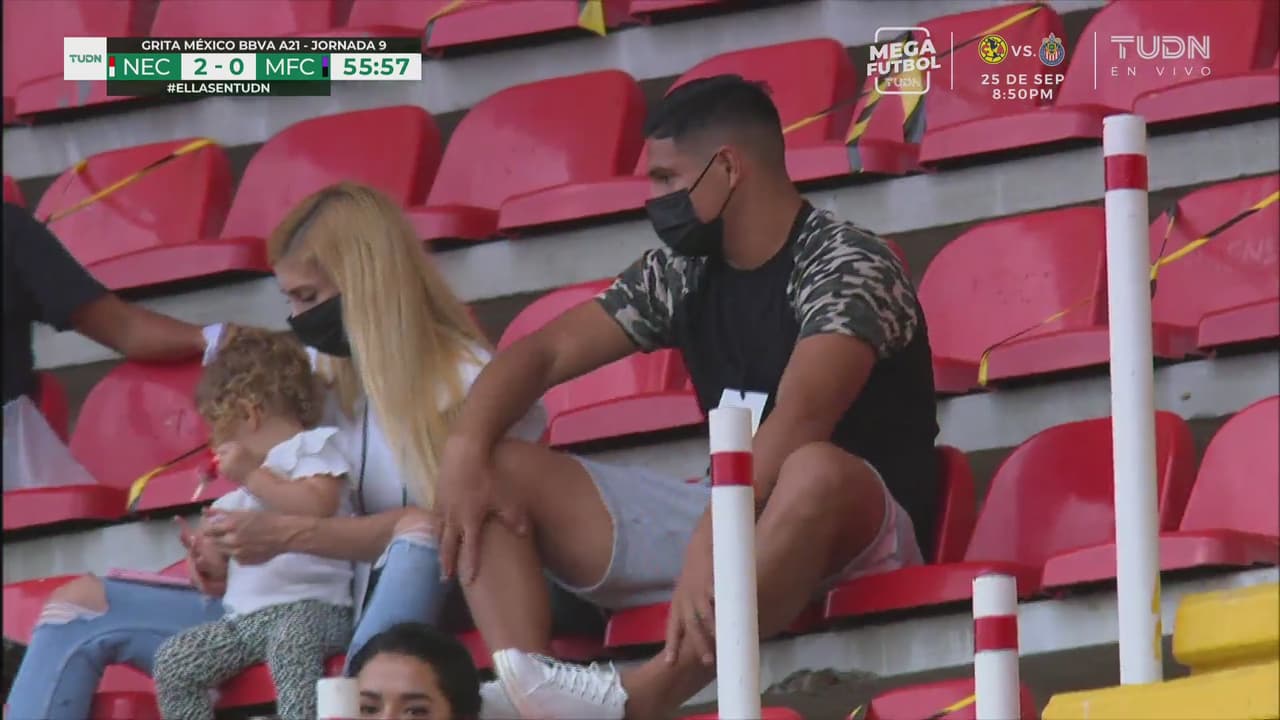 En la tribuna, Necaxa Femenil tuvo el apoyo de Maxi Salas, jugador de los Rayos, quien llevó a su familia a ver el partido que acabó en goleada para las de casa, en una gran exhibición de futbol.
