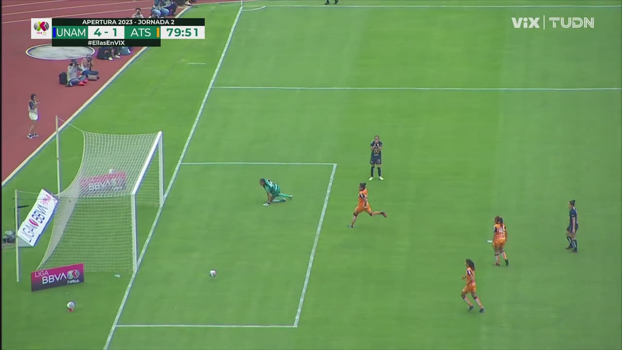 Anahí Gómez iba por la lateral con el balón poniendo servicio a Paola que estaba frente a la meta tapatía, pero disparó muy abierto.