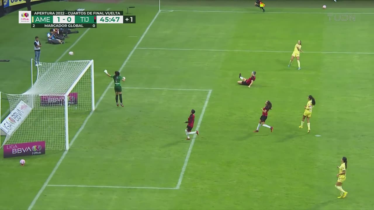 Aurelie Kaci abre para Sabrina, quien se escapa a territorio rival para disparar, pero el balón sale sin dirección.