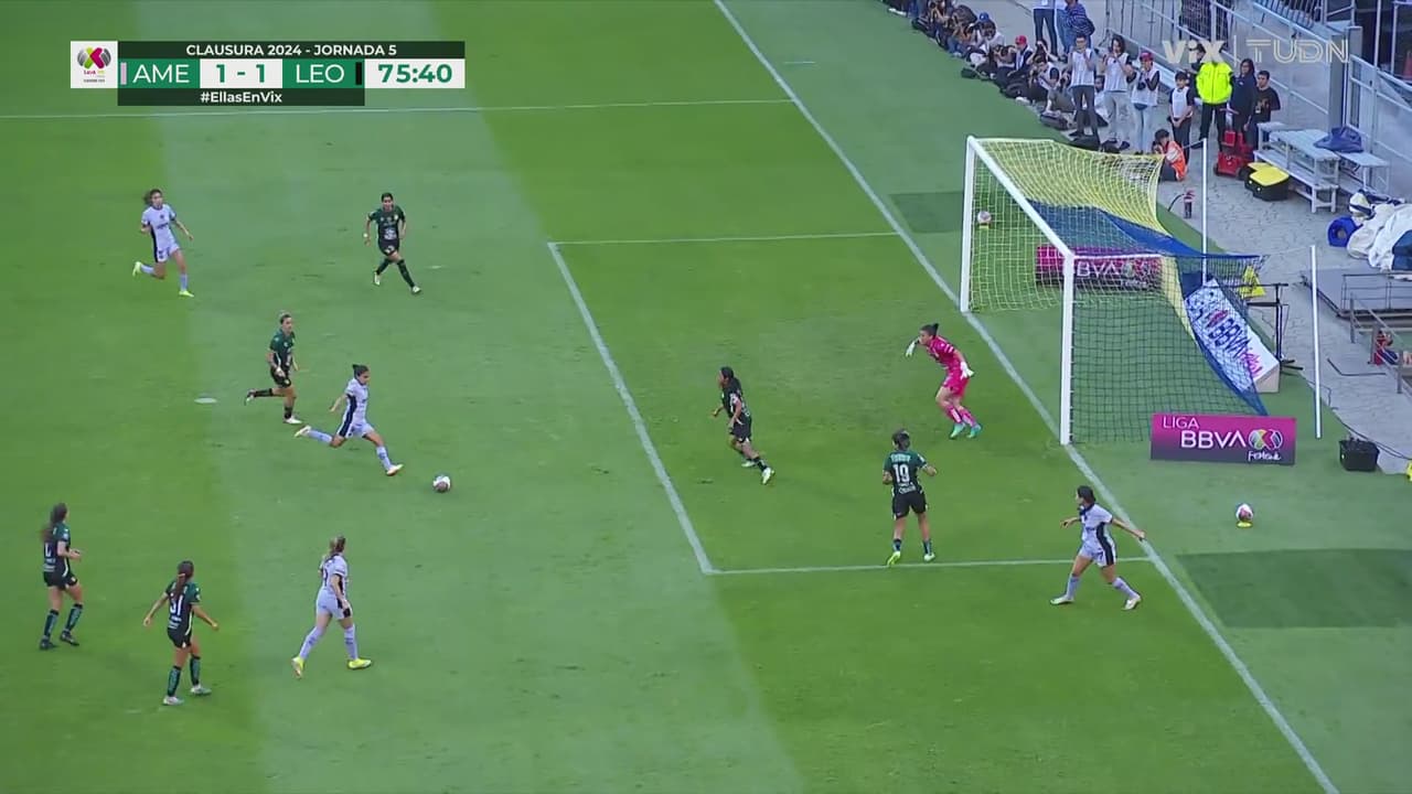 Primero, Karen llegó sola y quiso cabecear pero fue a las manos de Cota y después, Natalia le pegó feo perdiéndose el golazo.
