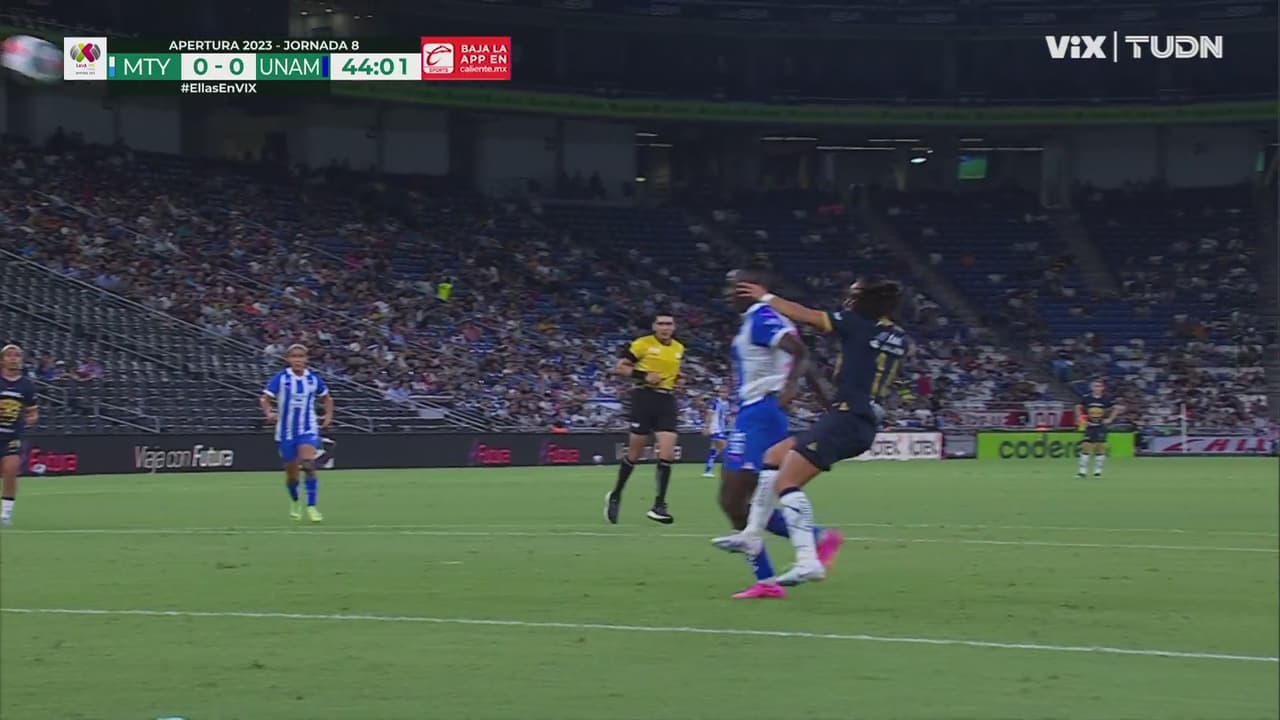 La dorsal 14 de las universitarias fue chocada por Chinwendu por querer quitarle el balón, para buscar el primero de Monterrey.