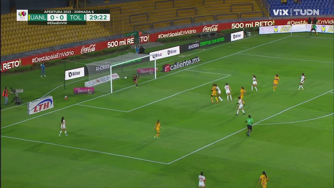 Lizbeth Ovalle hizo su magia burlando a las rivales metiendo el servicio que cabecea Nayely Rangel pero la envió por un costado.