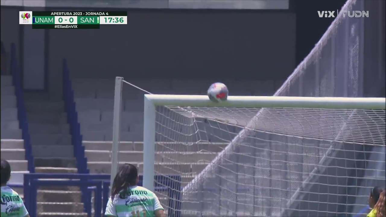 Gran potencia con la zurda de Aerial tratando de sorprender a Hannia De Ávila que estaba adelantada de su portería.