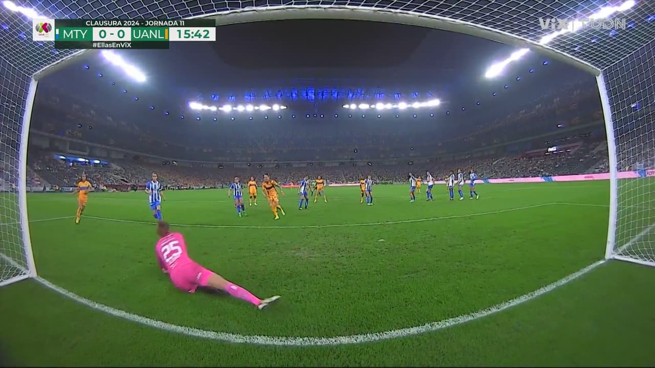 Lizbeth cobró por abajo de tiro libre buscando la base del poste, pero llegó directo a las manos de la cancerbera local.