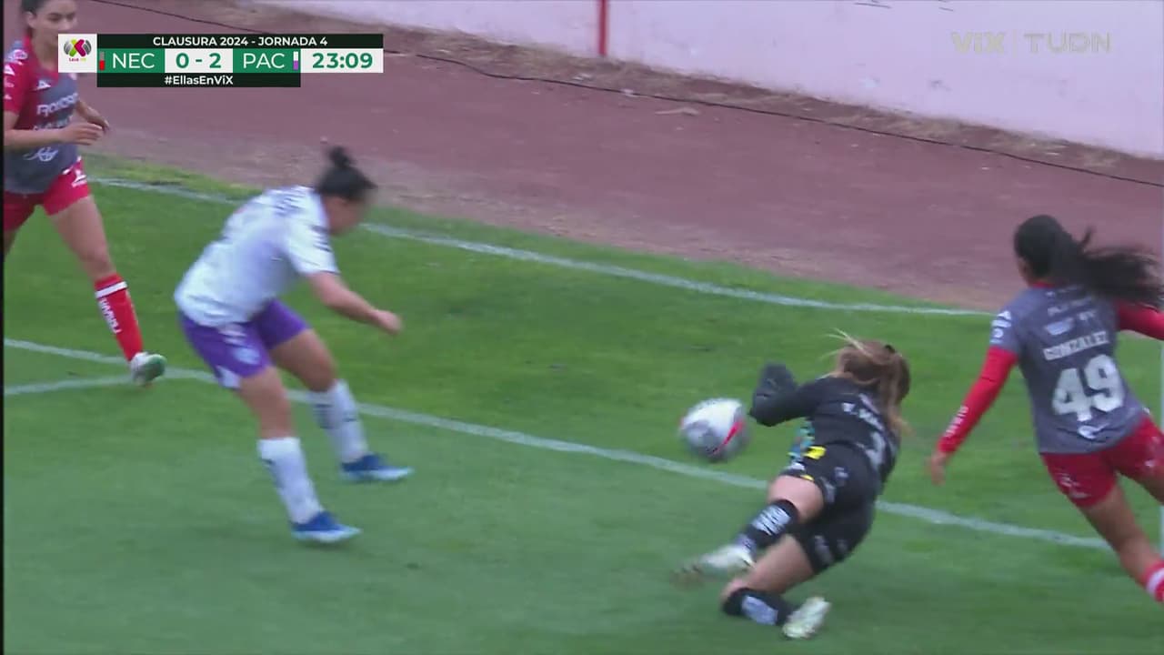 Primero, se queda con el centro de Chinwe y después, detiene el tiro de Charlyn Corral que tomó el balón suelto.