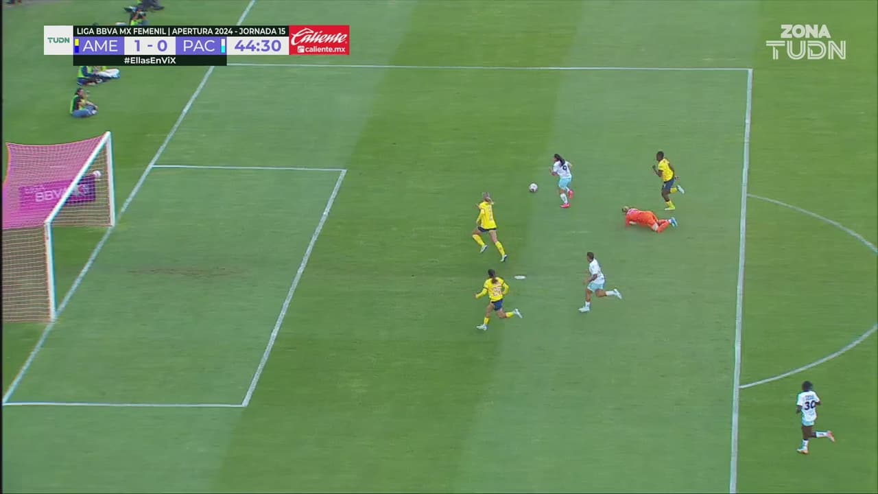 La delantera de Pachuca se quitó a la portera americanista, pero no pudo definir ante el arco.