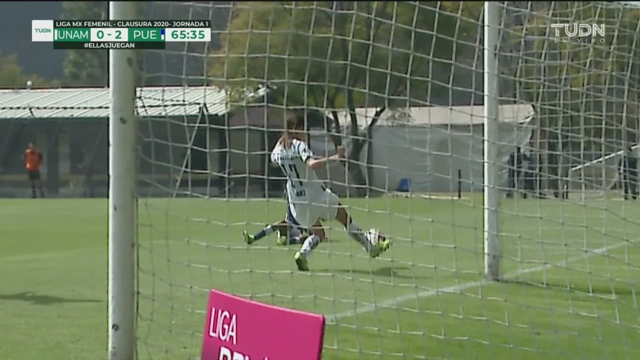 ¡Pierna salvadora! Diana Gómez evita el tercero de Puebla