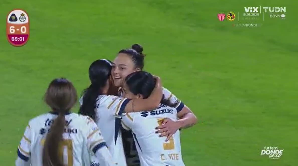 ¡Poker de Ribeiro! Stephanie marcó el 6-0 con golazo de tiro libre