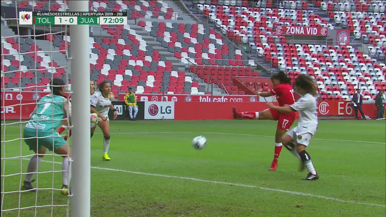 Mariel Román le pega de derecha dentro del área chica y fusila a la portera de Juárez.