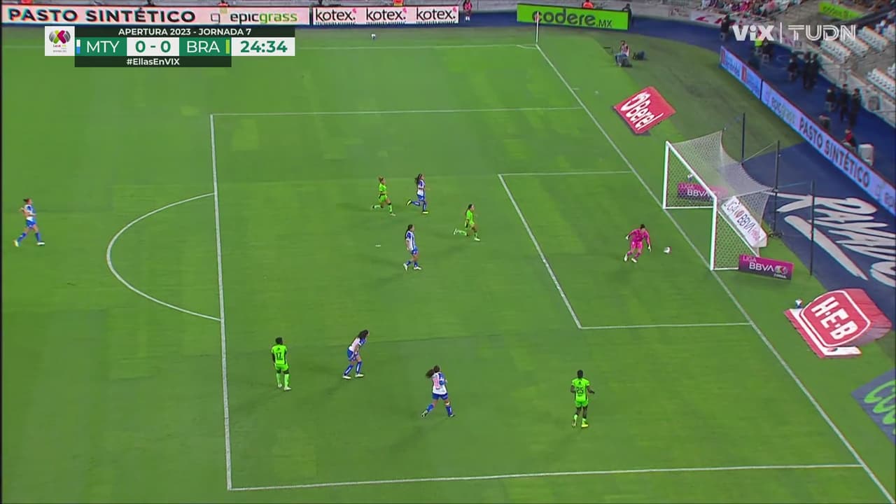A toda velocidad, Grace fue dejando rivales en el camino hacia portería buscando hacer el gol, que falla.
