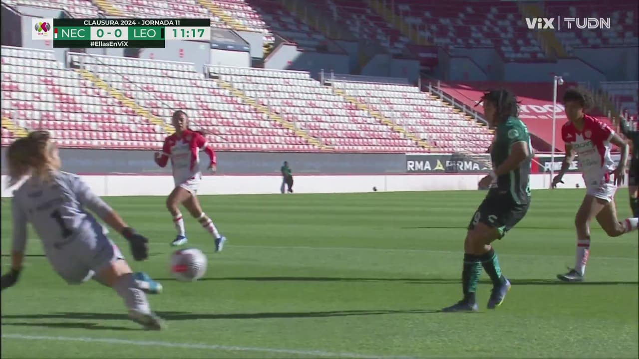 Ysaura Viso condujo el balón rumbo a la meta, pero la guardameta necaxista salió bien para evitar el peligro.