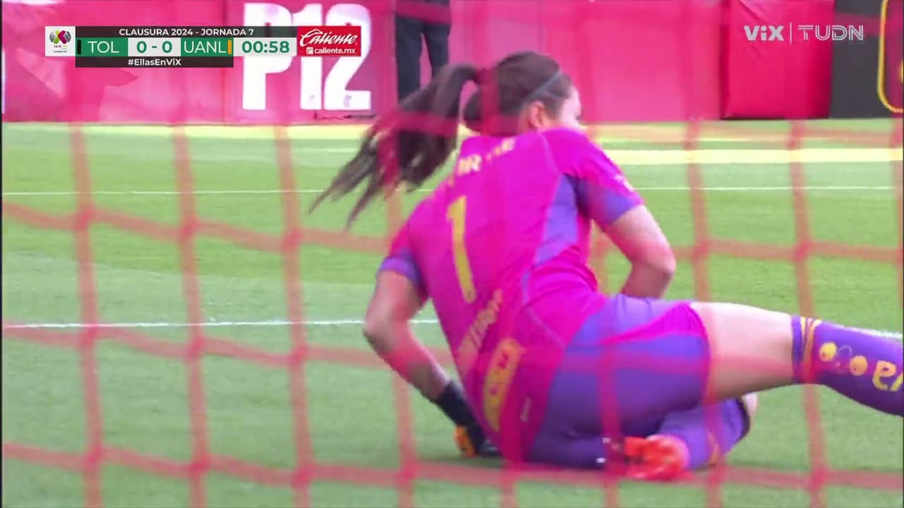 Con gran habilidad, Brenda se quitó a las rivales para disparar a la portería de Cecilia Santiago.