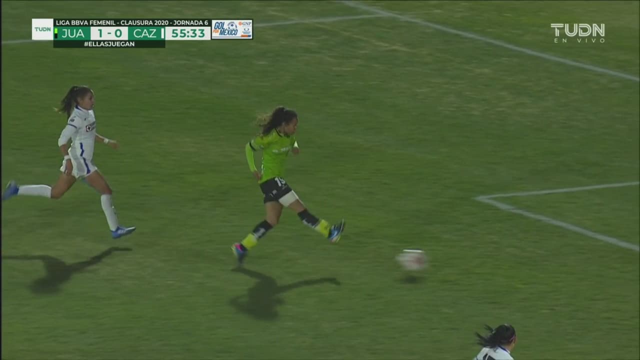 Atzimba Casas se mete al área y fusila con tremendo punterazo a la arquera celeste al minuto 55.