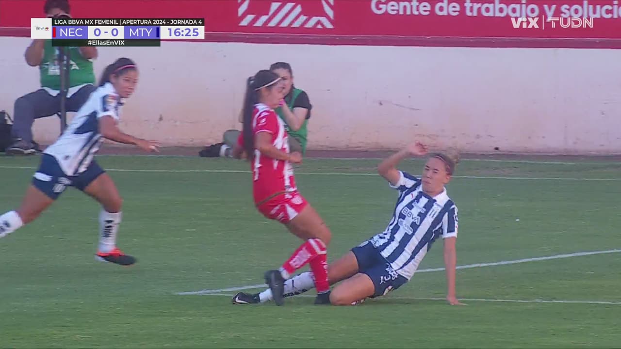 Tanna Sánchez se ganó la tarjeta amarilla por llegar tarde a la disputa del balón, llevándose de corbata a la necaxista.